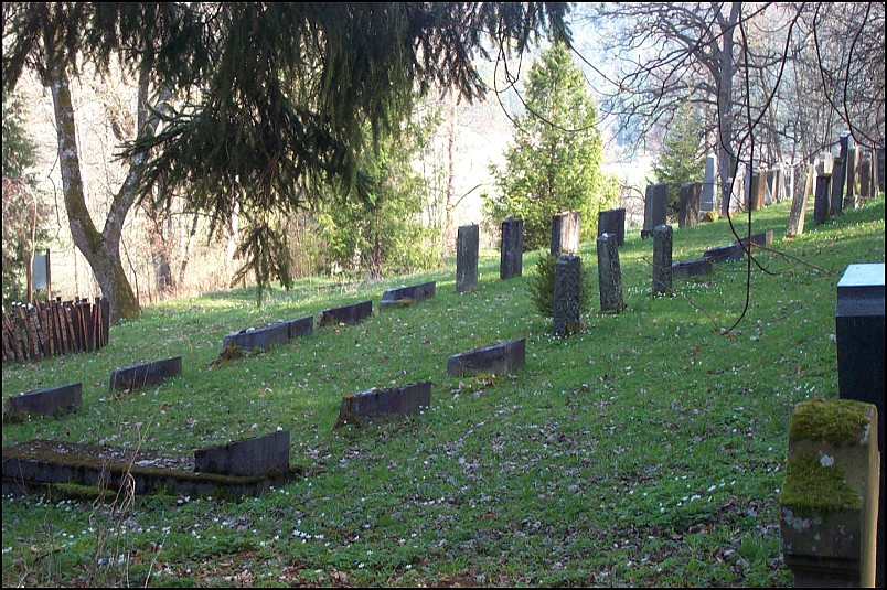 Bei der Ansiedelung der 25 jüdischen Familien wurde vom Ortsherrn, Freiherr von Liebenstein, die Anlage eines Friedhofs zugesichert und Grund und Boden dafür zur Verfügung gestellt. Er wurde 1789 am Rande des jüdischen Wohngebiets auf steilem Gelände angelegt. Nach mehrfachen Vergrösserungen umfasst er heute rund 40 a mit fast 400 Gräbern.