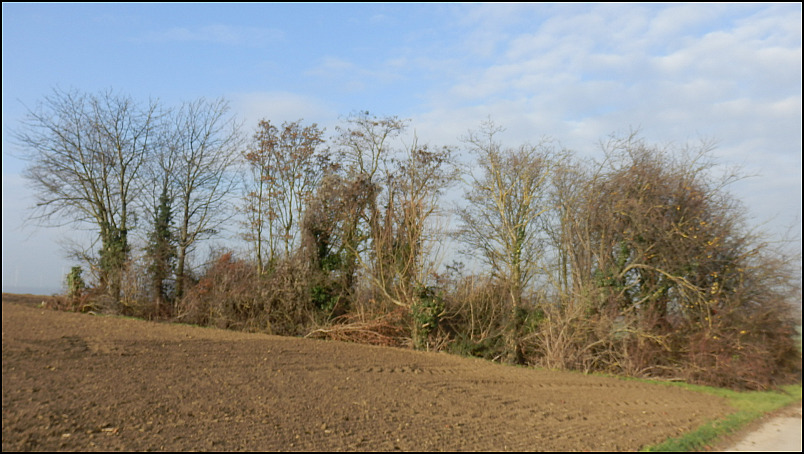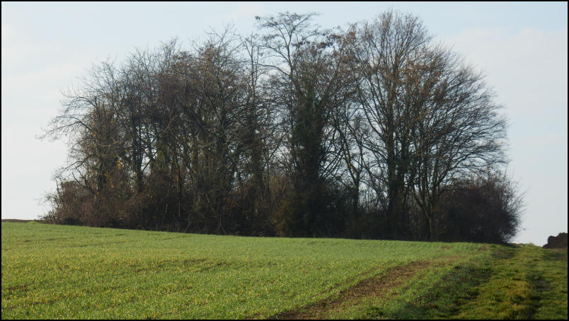 Der Friedhof beeindruckt durch seine Lage, er liegt umgeben von Baumgruppen auf einem Feld.